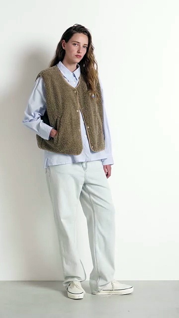 La veste sans manches Hoktown pour femme est l’une des pièces iconiques du vestiaire American Vintage. Sa texture douce à l’effet shearling, conçue à partir de matière recyclée, offre une chaleur agréable et un confort enveloppant au quotidien. Déclinée dans une large palette de couleurs, elle se superpose facilement : sur un ensemble en molleton, une maille ou même une robe, pour composer des looks décontractés et cosy en toutes saisons.