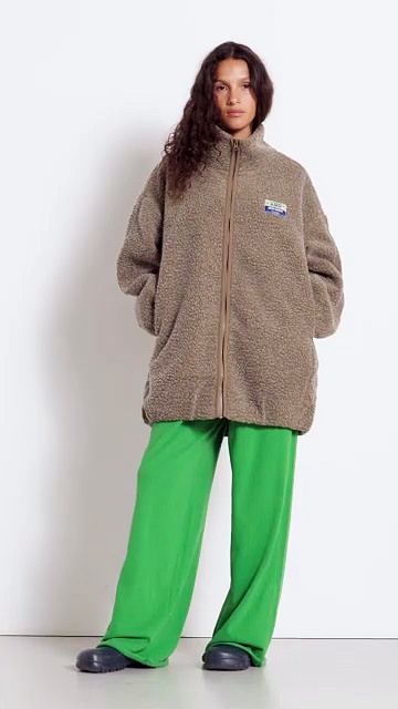 De halflange Hoktown-jas voor dames valt op door zijn iconische materiaal met shearling-effect, dat warm en omhullend is. Hij is ontworpen voor de koudere seizoenen en biedt optimaal comfort dankzij zijn ruime pasvorm en royale volume. De hoge kraag met ritssluiting biedt extra bescherming tegen de kou en geeft het silhouet een technische touch. Deze veelzijdige en authentieke jas kan zowel dagelijks als bij een casual of meer stedelijke outfit worden gedragen, voor een comfortabele en zelfverzekerde look tijdens de koudere momenten.