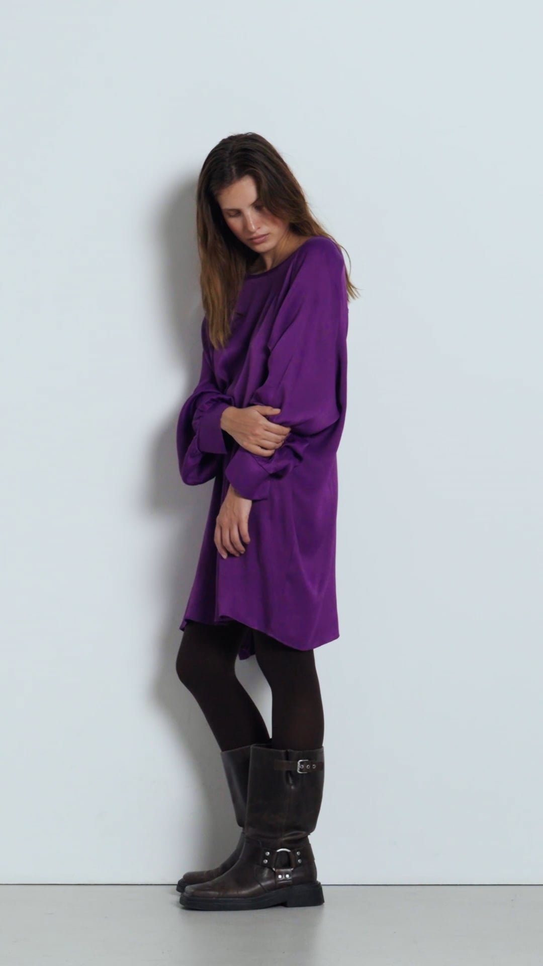 L'abito Tidim seduce con il suo taglio corto e ampio, pensato per una silhouette libera e femminile. Realizzato in un tessuto fluido, offre un comfort assoluto e una grande leggerezza. Il collo a barchetta sottolinea delicatamente la linea delle spalle, mentre il dettaglio dell'apertura sul retro aggiunge un tocco elegante e arioso. Con le sue maniche lunghe e il volume oversize, incarna uno stile ultra femminile, facile da indossare sia nella vita quotidiana che in occasioni più eleganti.
