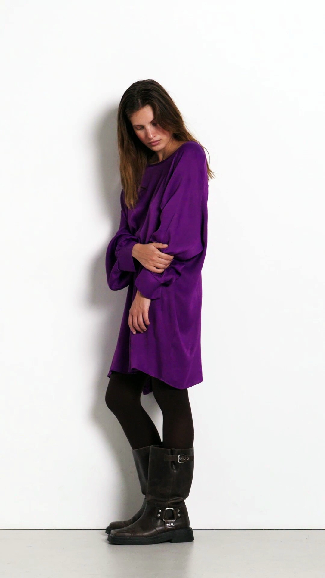 The Tidim dress charms with its short, loose fit, designed for a free and feminine silhouette. Crafted from a flowing fabric, it offers absolute comfort and lightness. Its boat neck delicately highlights the shoulders, while the opening detail at the back adds an elegant and airy touch. With its long sleeves and oversized fit, it embodies an ultra-feminine look that is easy to wear both for everyday wear and more formal occasions.