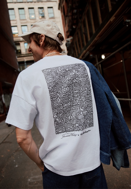 Accustomed to large-scale collaborations and paying tribute to the genius of Keith Haring in his approach, this year he has created an exclusive piece for American Vintage.
