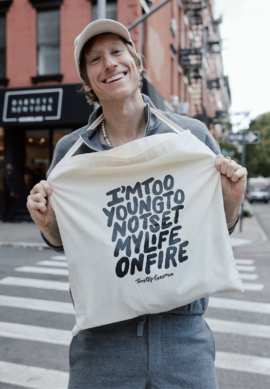 Timothy Goodman says his greatest joy is building connections through his art. Born in Cleveland, Ohio, the artist moved to New York 20 years ago. Since then, he has created no fewer than 250 murals and large-scale works, combining words and drawings with infectious enthusiasm, written 3 books and collaborated with many brands (Nike, Nespresso and Saint Laurent, to name but a few).
